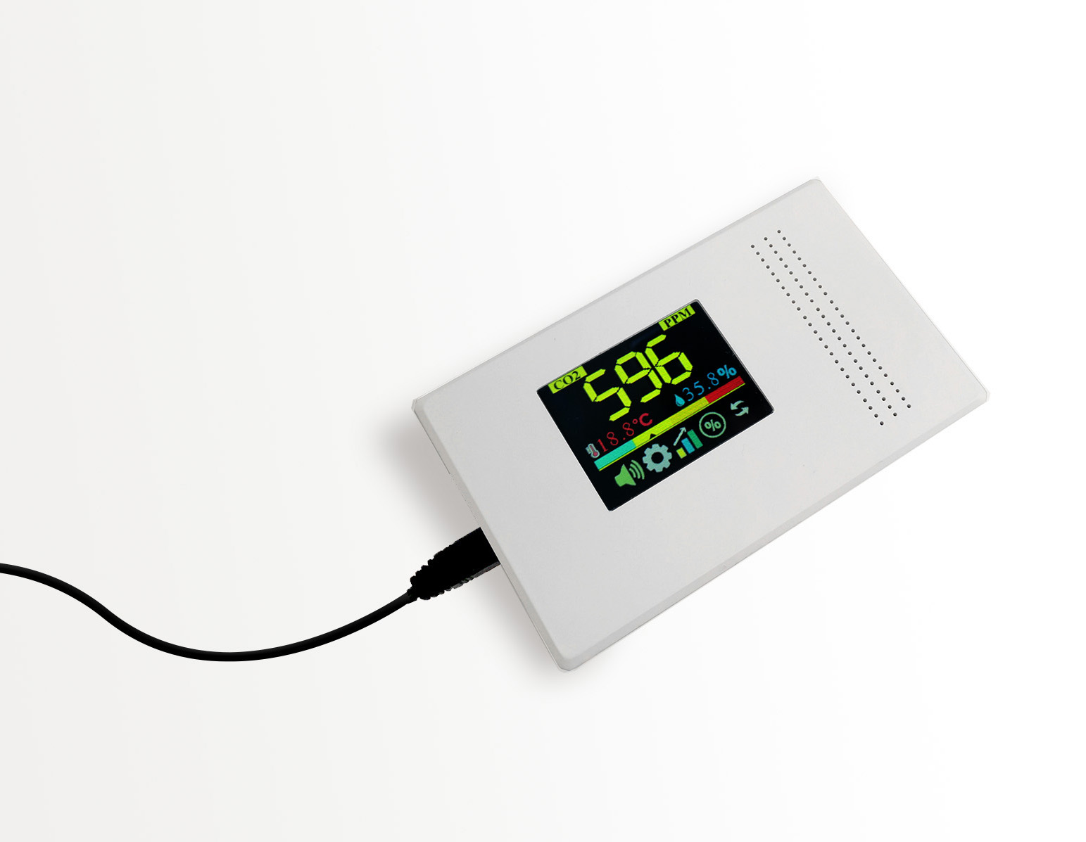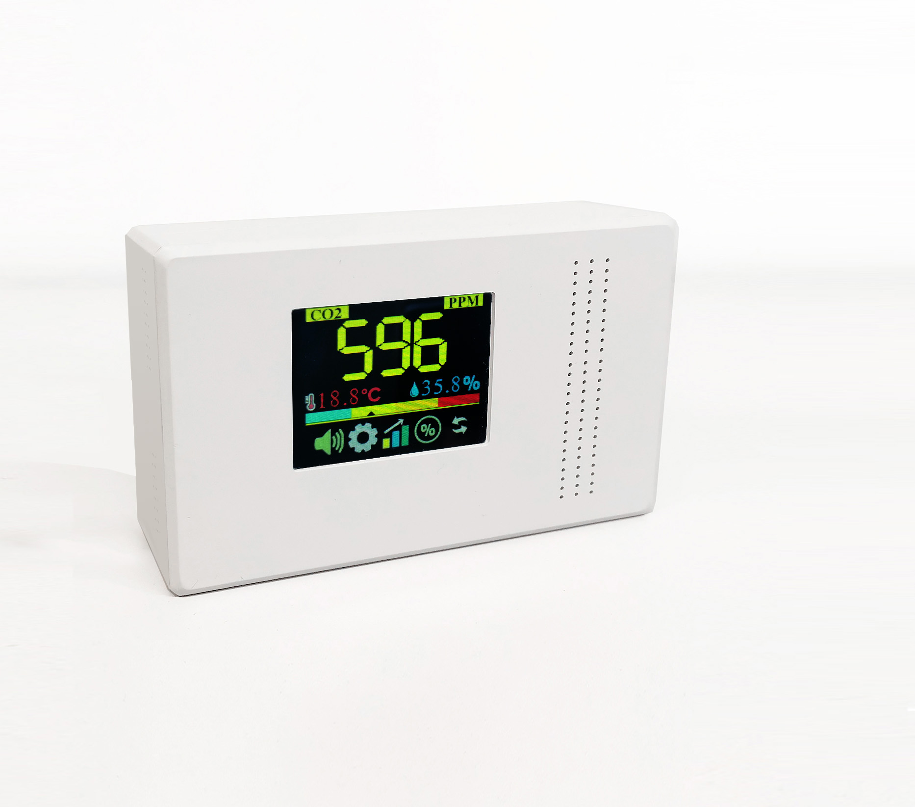 Détecteur CO2, spécialement étudié pour la prise en compte immédiate de la variation de teneur en CO2 d’une pièce pendant son aération.